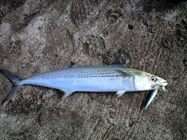全く青物の気配がなかったので同行者がシーバスをゲットしていたので、僕もちょっとシーバスでもという感じでシーバスルアーをセット、そのルアーはパワーブレード24g!!